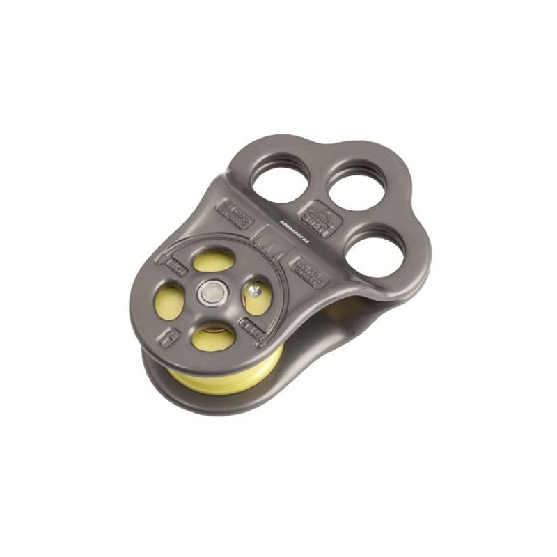 The DMM Triple Attachment Pulley combines the high efficiency of our pulleys with a small three hole rigging plate to give an extremely versatile piece of equipment. It can obviously be used as a standard pulley, but the additional holes allow it to be guided or controlled without adding any complication into the system.