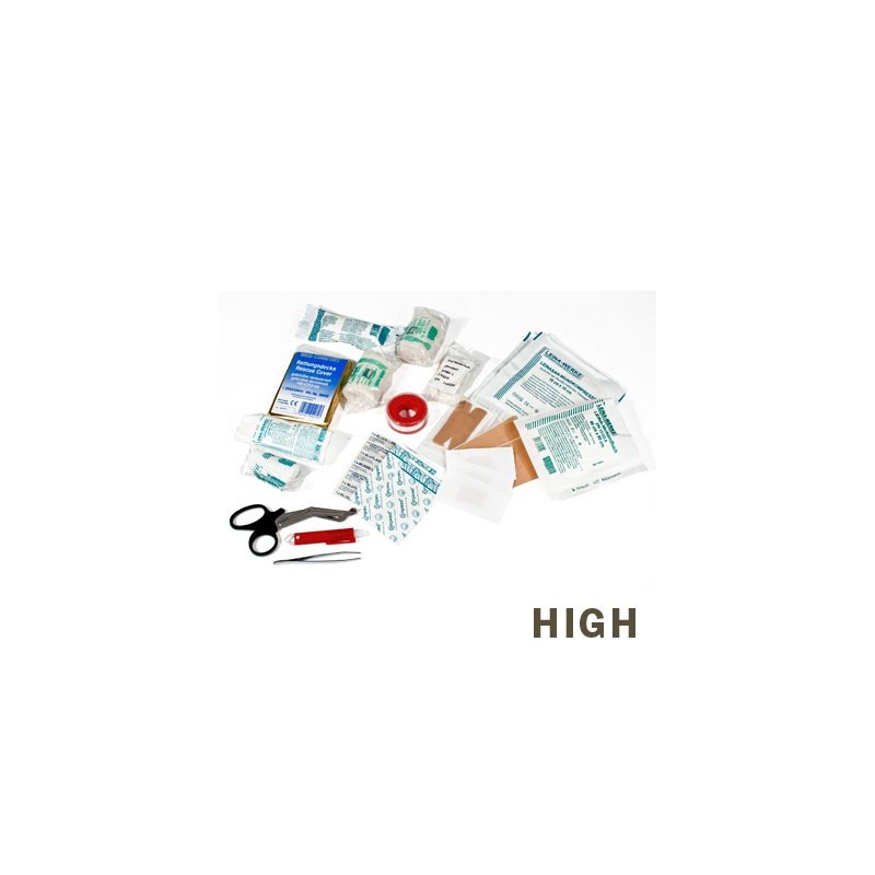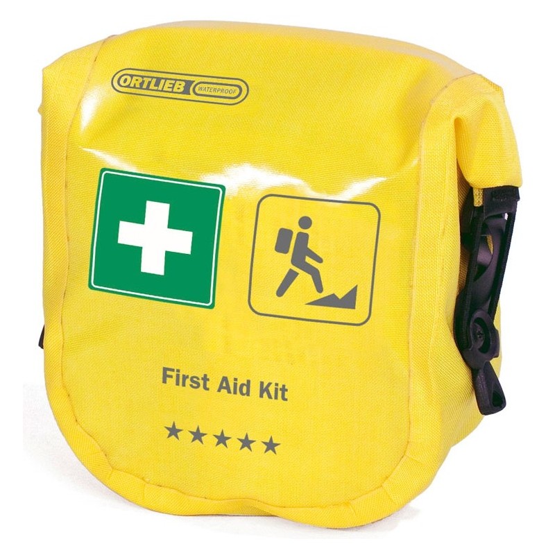 + Umfangreiches Erste-Hilfe-Set in wasserdichter Hülle mit Rollverschluss aus PU-beschichtetem Nylongewebe