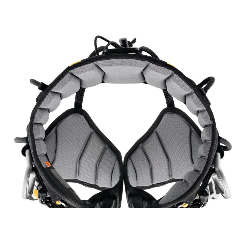 Für den Aufstieg am Einfachstrang konzipierter Gurt: ventrale Halteöse zum Einhängen eines mechanischen Prusik ZIGZAG oder ZIGZAG PLUS mit den Zubehören CHICANE und KNEE ASCENT und eine rückseitige Schnalle zum Installieren einer CROLL-Bruststeigklemme mit einem SECUR-Schulterträger.
