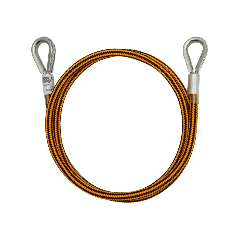 Verbindungsmittel / Anschlagseil mit fester Länge aus verzinktem, schnittfestem Stahlkabel auf 6mm Durchmesser (133 Einzellitzen). Doppelpolyestermantel und 12mm Aussendurchmesser.