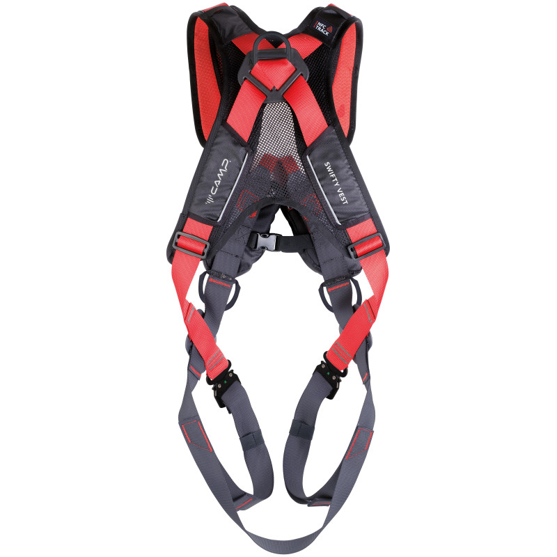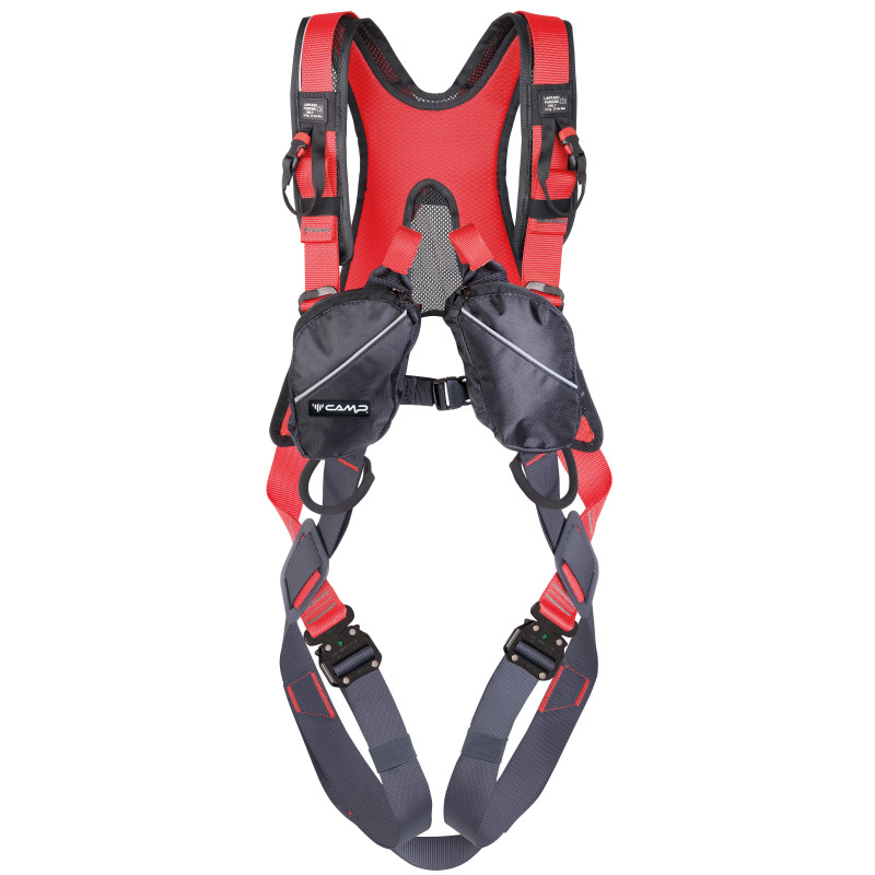 Einfacher Auffanggurt mit bequemer Polsterung, welche die Träger umhüllt und dabei Rücken und Schultern stützt und schützt.