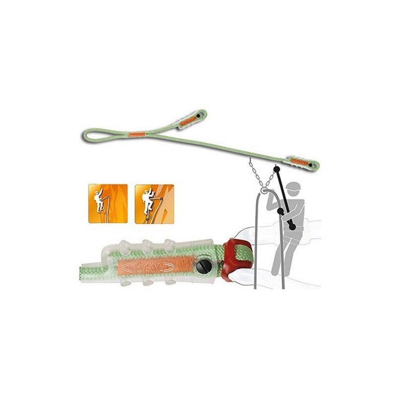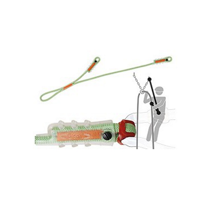 Doppeltes Verbindungsmittel aus dynamischem Seil mit vernähten Enden zur einfacheren Selbstsicherung am Standplatz und beim Abseilen.