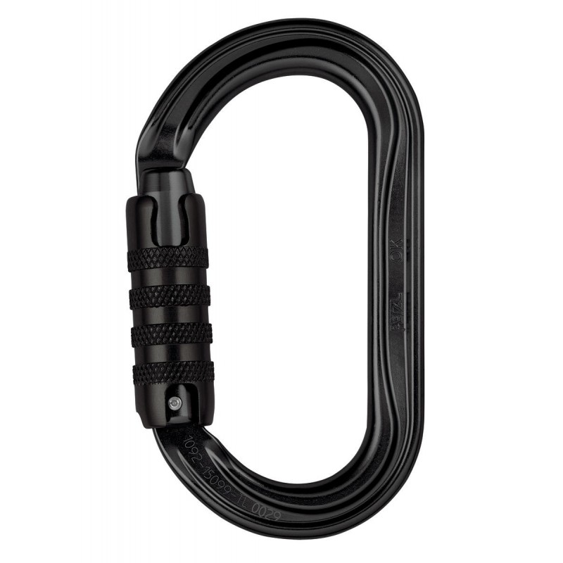 Der leichte schwarze OK-Karabiner TL (TRIACT-LOCK, Dreiwegverschluss) ist aus Aluminium gefertigt. Seine ovale Form ermöglicht es, Geräte wie Seilrollen, Seilklemmen und mitlaufende Auffanggeräte optimal zu positionieren. Die kantenfreie Oberfläche an der Innenseite und das Keylock-System erleichtern das Ein- und Aushängen.