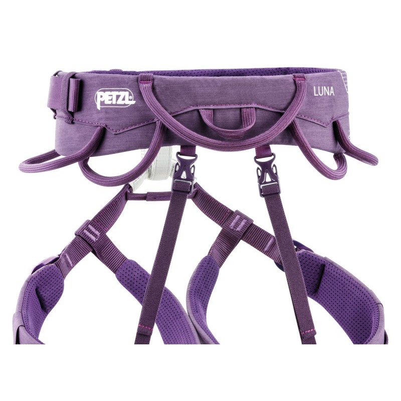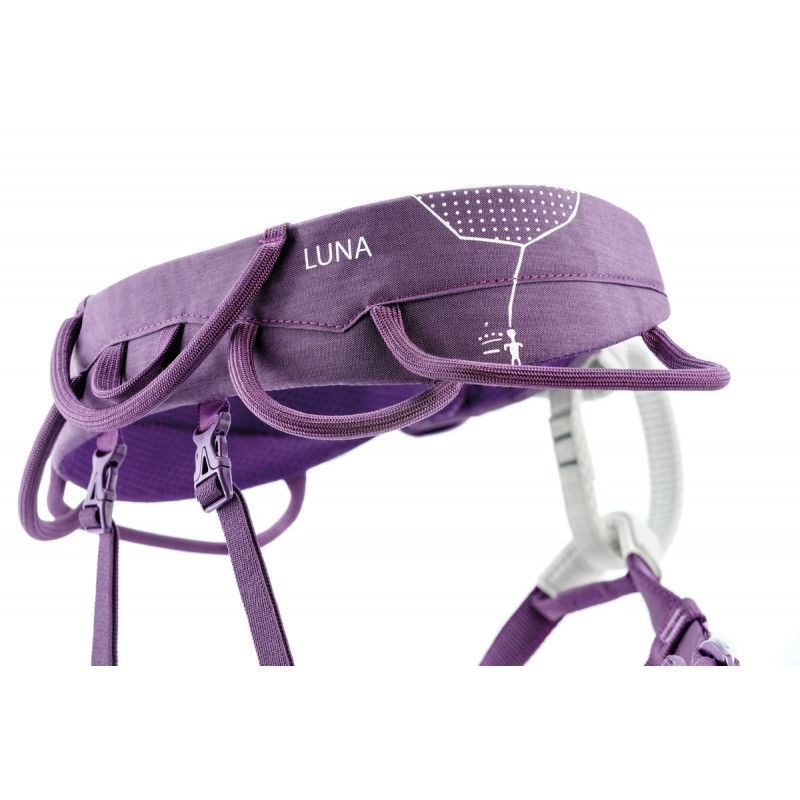 Der LUNA-Klettergurt ist speziell auf die weibliche Anatomie abgestimmt. Der zum technischen Bergsteigen, Trad-Climbing und Klettern von Mehrseillängenrouten konzipierte Gurt ist mit einstellbaren Beinschlaufen ausgestattet, um sich sowohl im Sommer als auch im Winter allen Kletterinnen anzupassen. Beinschlaufen und Hüftgurt sind gepolstert und gewährleisten maximalen Komfort, ohne die Bewegungsfreiheit einzuschränken. Die fünf Materialschlaufen ermöglichen den Transport der zur Fortbewegung in Fels und Eis benötigten Ausrüstungsgegenstände und erleichtern beim Klettern den Zugriff auf das Material.
