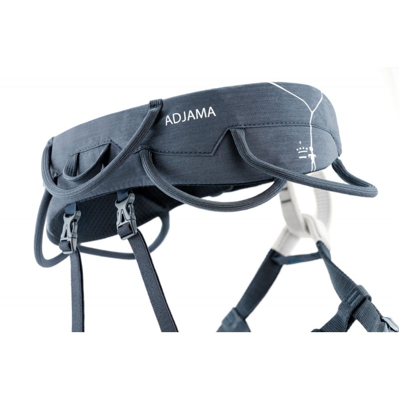 Der zum technischen Bergsteigen, Trad-Climbing und Klettern von Mehrseillängenrouten konzipierte ADJAMA-Gurt ist mit einstellbaren Beinschlaufen ausgestattet, um sich sowohl im Sommer als auch im Winter allen Kletterern anzupassen. Beinschlaufen und Hüftgurt sind gepolstert und gewährleisten maximalen Komfort, ohne die Bewegungsfreiheit einzuschränken. Die fünf Materialschlaufen ermöglichen den Transport der zur Fortbewegung in Fels und Eis benötigten Ausrüstungsgegenstände und erleichtern beim Klettern den Zugriff auf das Material.