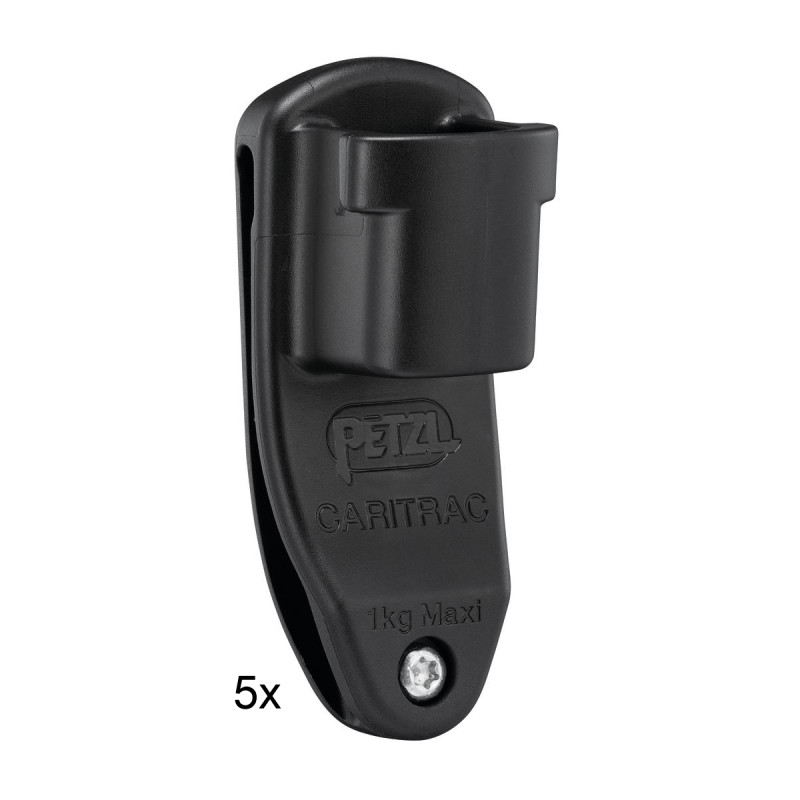 Die Halterung CARITRAC wird am Gurtband des Klettergurts eingehängt und dient zum Befestigen der TRAC-Seilrollen. Dank seiner ergonomischen Form lässt sich die Seilrolle schnell und einfach am Gurt einhängen. Der CARITRAC-Halter ist keine PSA.
