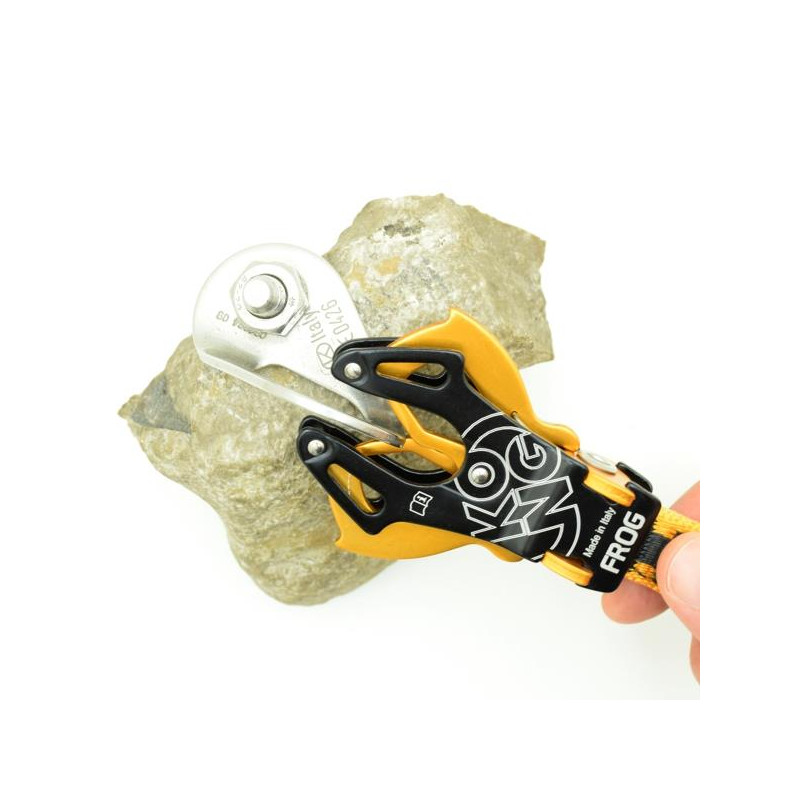Der Frog ist ein revolutionärer Karabiner, der sich beim Anschlagen automatisch schliesst.